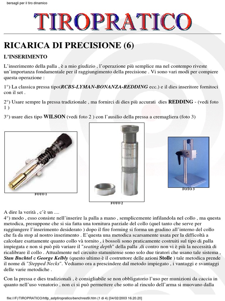 quotidianamente per poter usare uno stesso inseritore in pi fucili , senza per questo tarare il dies ogni