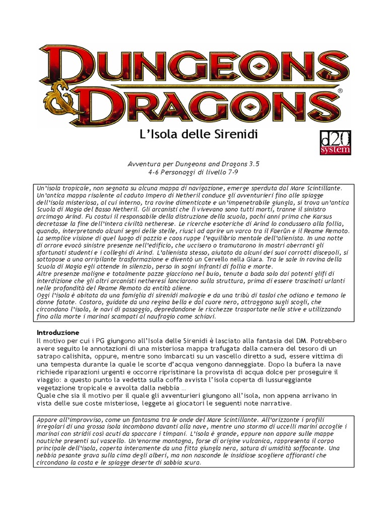Il motivo per cui i PG giungono allIsola delle Sirenidi lasciato alla fantasia del DM. Potrebbero