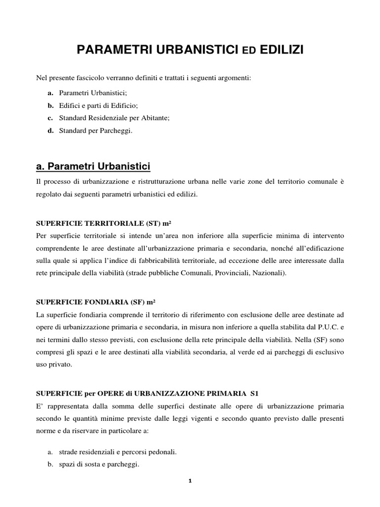 a. Parametri Urbanistici;