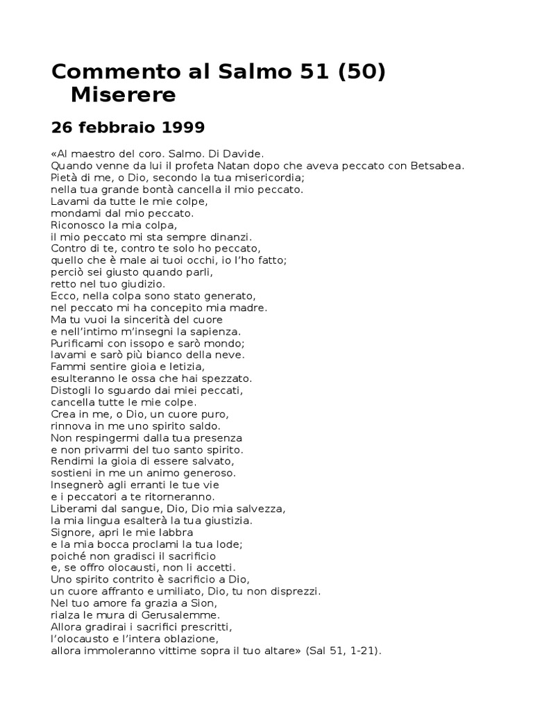 cuore, il Miserere ci possa davvero fare entrare nello spirito penitenziale della Quaresima. il testo