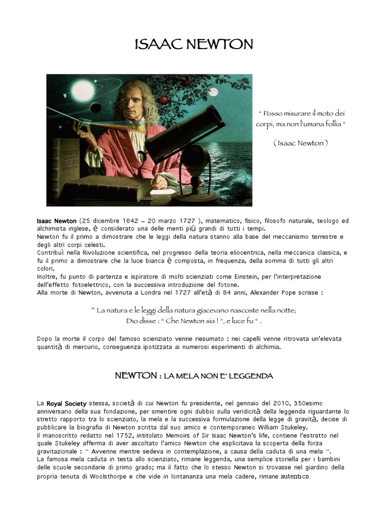 delle scuole secondarie di primo grado; ma il fatto che lo stesso Newton si trovasse nel giardino della
