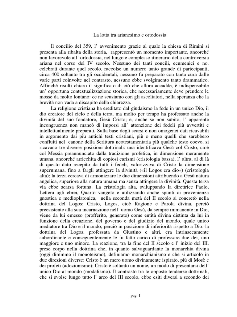 tra la dottrina di Ario e quella espressa dal simbolo niceno. Comincia adesso,