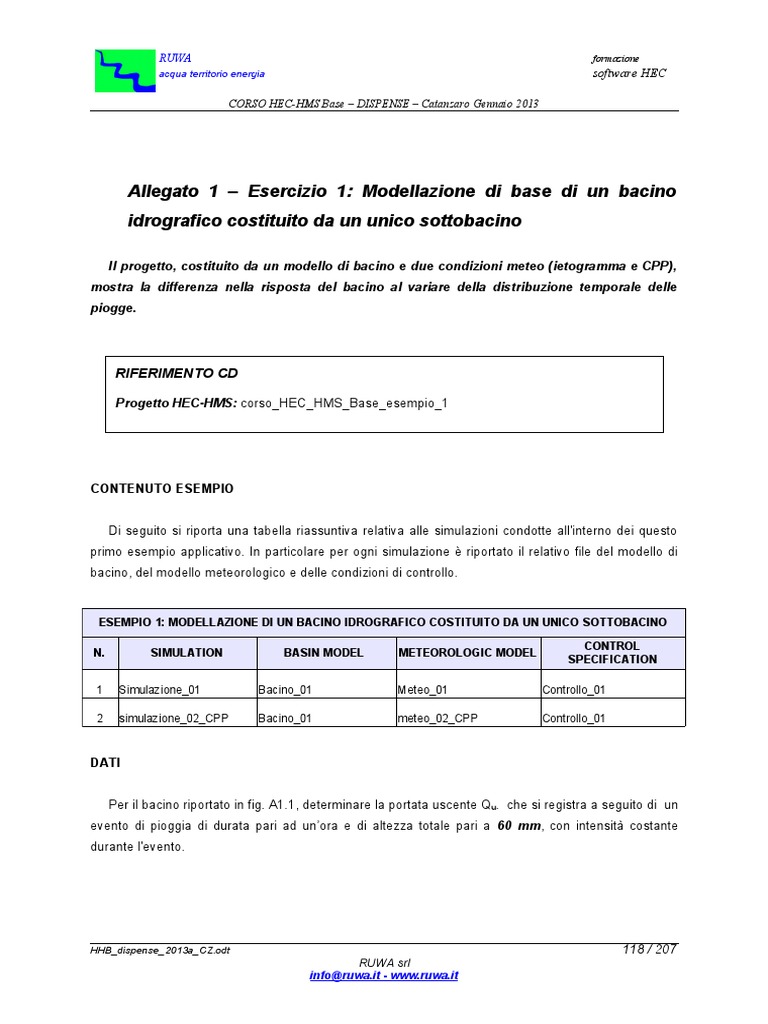 CORSO HEC-HMS Base DISPENSE Catanzaro Gennaio 2013