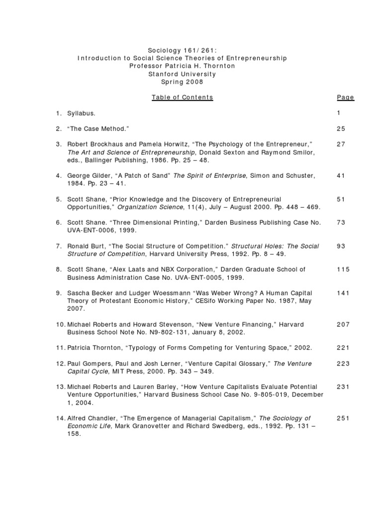 Introduction to Social Science Theories of Entrepreneurship Professor Patricia H. Thornton Stanford University Spring 2008