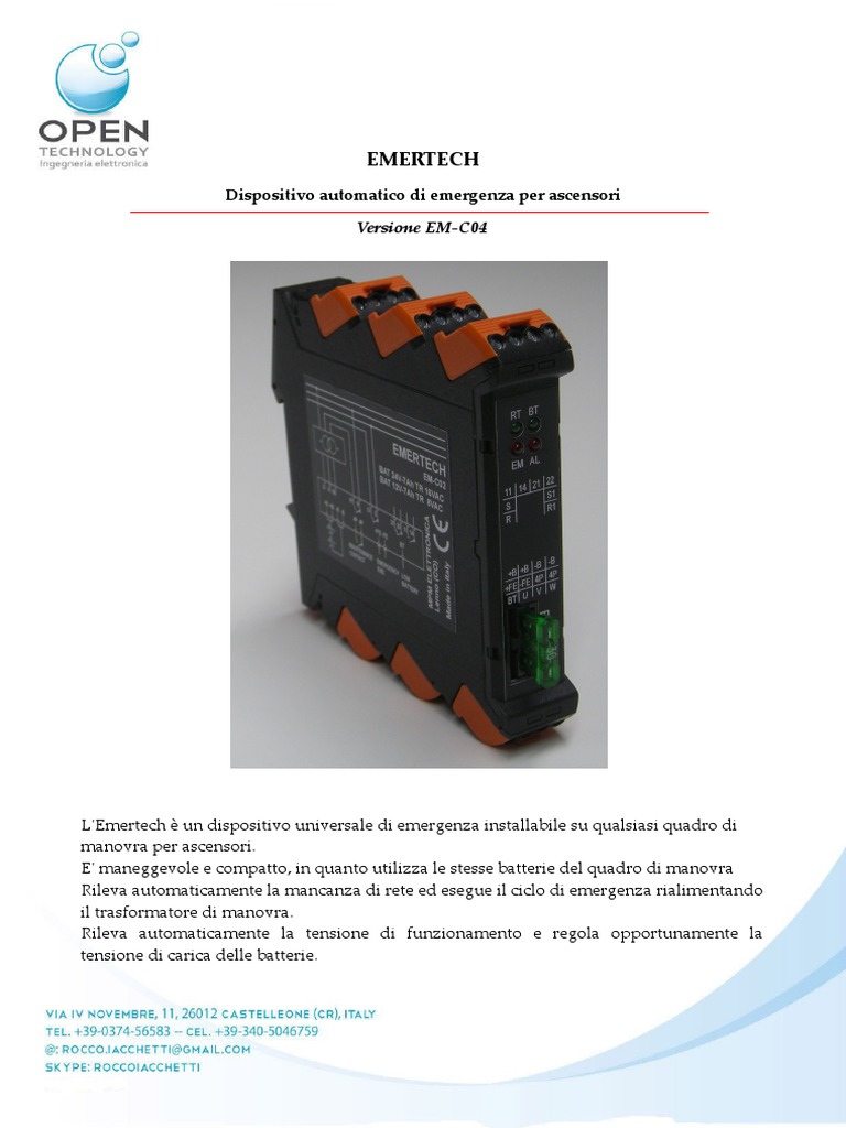 Emertech utilizzato su quadri di manovra per ascensori per il ritorno della cabina al piano e
