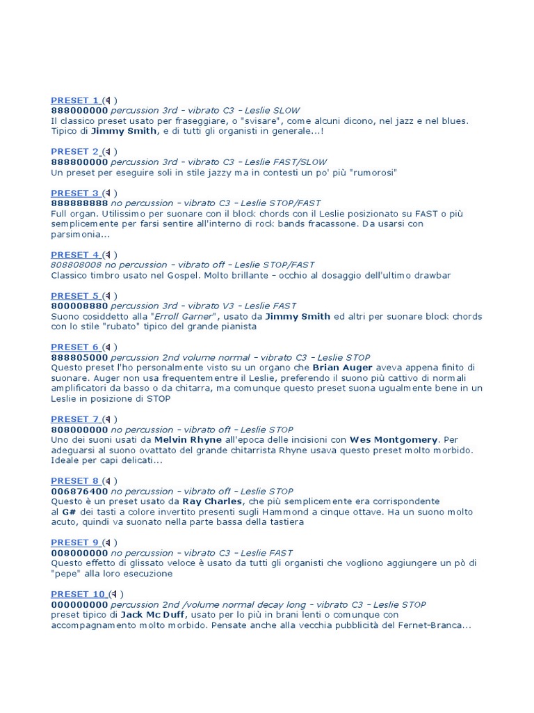 Questo preset l'ho personalmente visto su un organo che Brian Auger aveva appena finito di