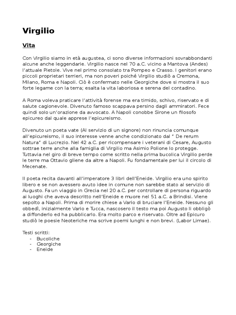 sepolto a Napoli. Prima di morire chiese a Vario di bruciare lEneide. Nessuno gli