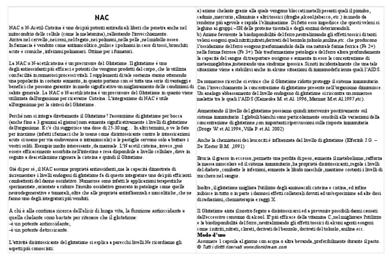 NAC o N-Acetil-Cisteina uno dei pi potenti antiradicali liberi che penetra anche nel