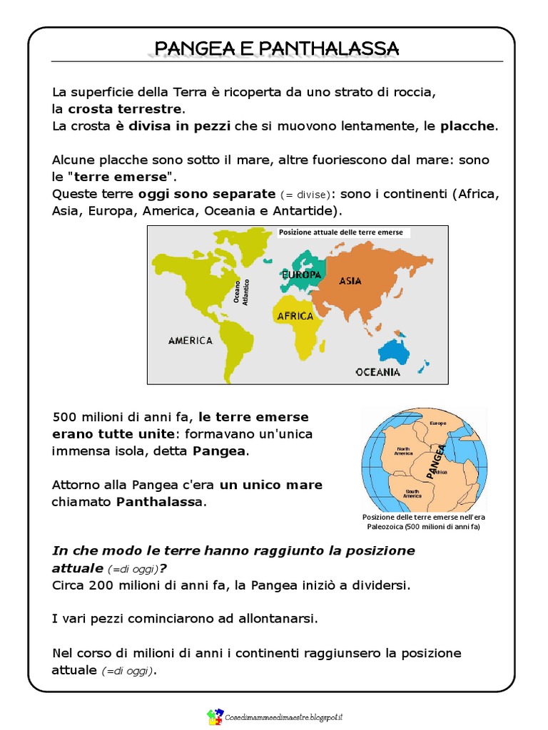 Queste terre oggi sono separate (= divise): sono i continenti (Africa,