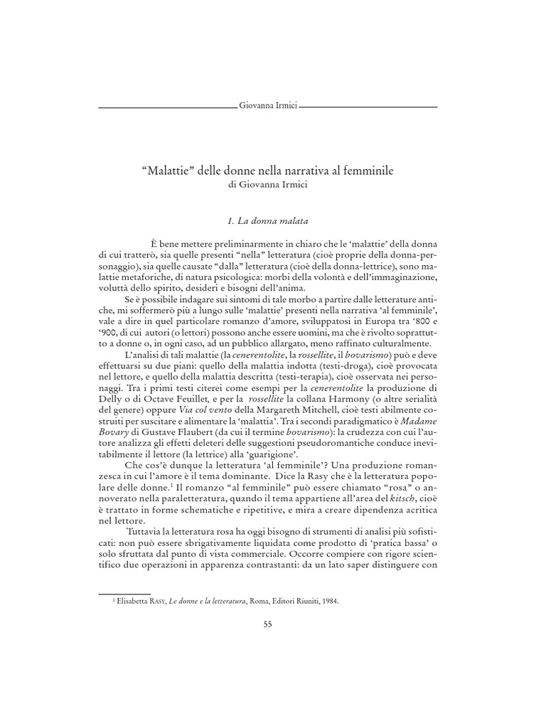 Se possibile indagare sui sintomi di tale morbo a partire dalle letterature antiche, mi soffermer pi a lungo sulle malattie presenti nella narrativa al femminile,