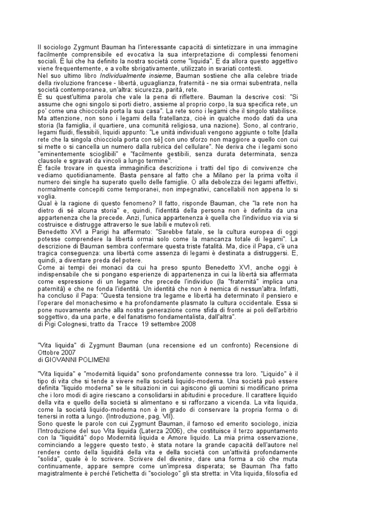 "Vita liquida" di Zygmunt Bauman (una recensione ed un confronto) Recensione di