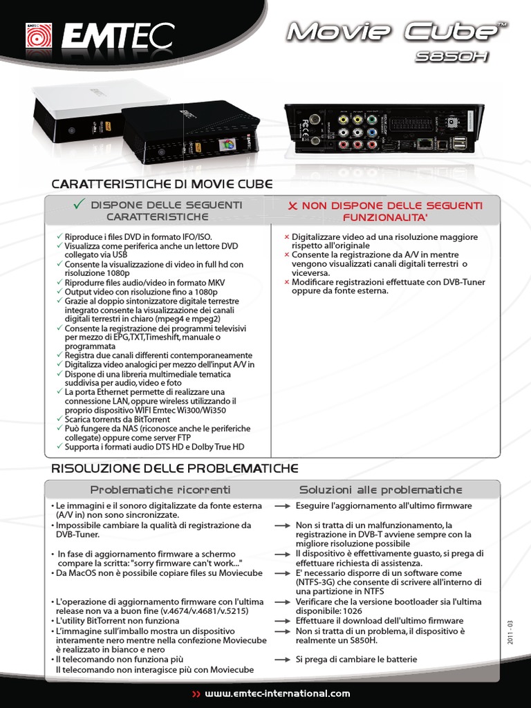 Per effettuare l'aggiornamento rmware occorre andare sul sito emtec e scaricare il rmware pi recente