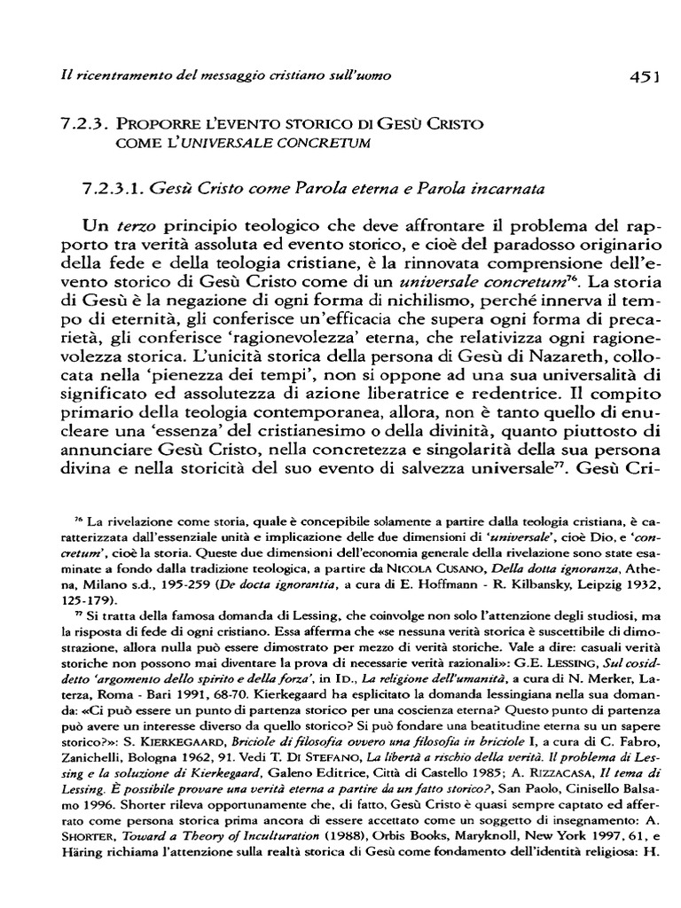 proposto la concezione di Ges Cristo come universale concretum, ec
