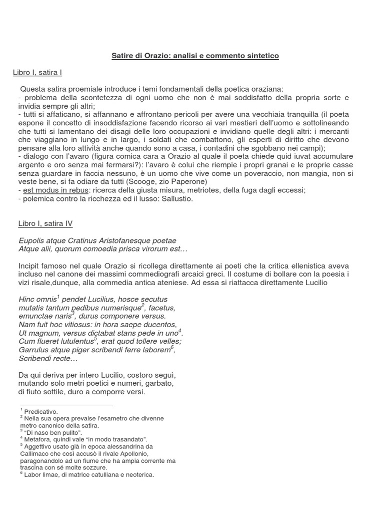 Satire di Orazio: analisi e commento sintetico