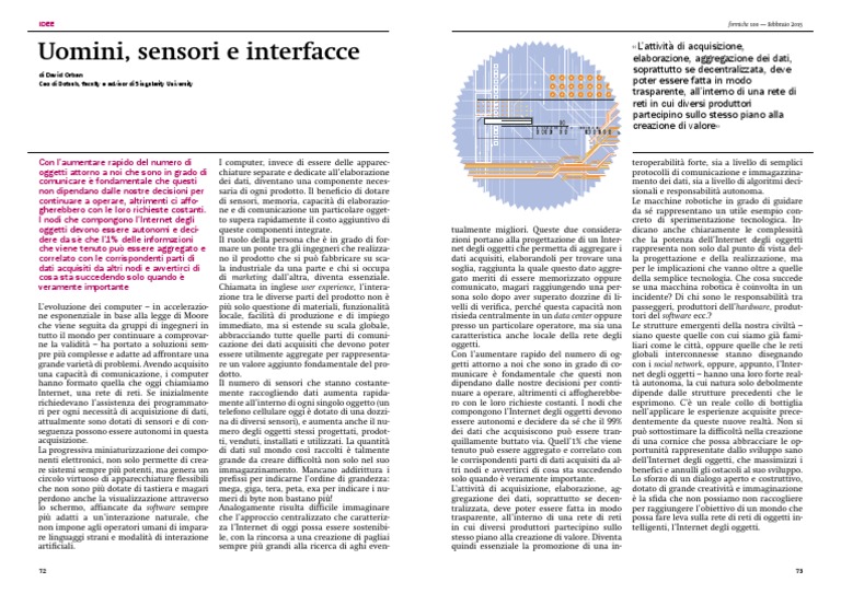 Il numero di sensori che stanno costantemente raccogliendo dati aumenta rapidamente allinterno di ogni singolo oggetto (un