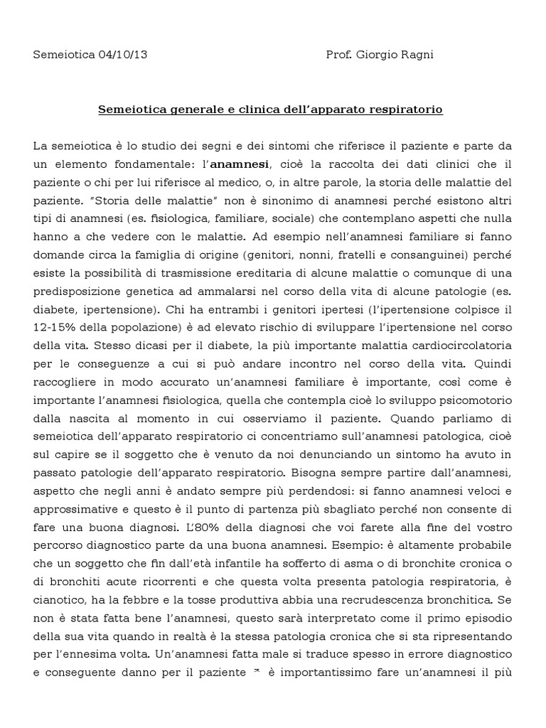 passato patologie dellapparato respiratorio. Bisogna sempre partire dallanamnesi,