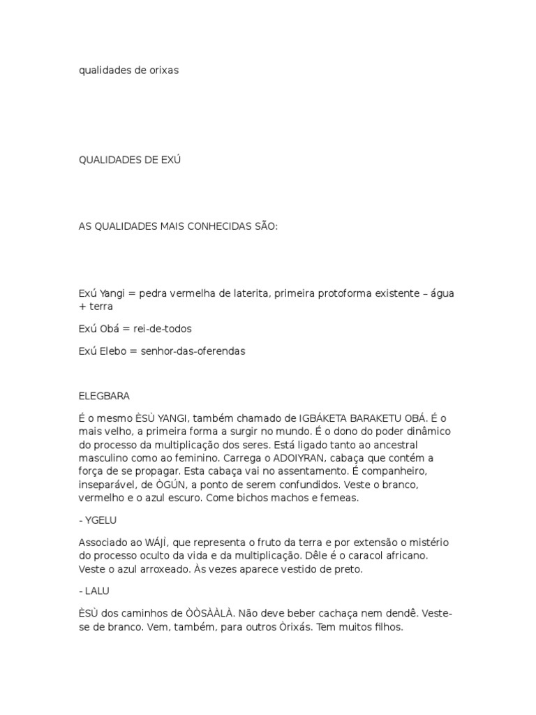 Qualidades do Orix Oxal, uns dos vrios caminhos (qualidades) pelos quais