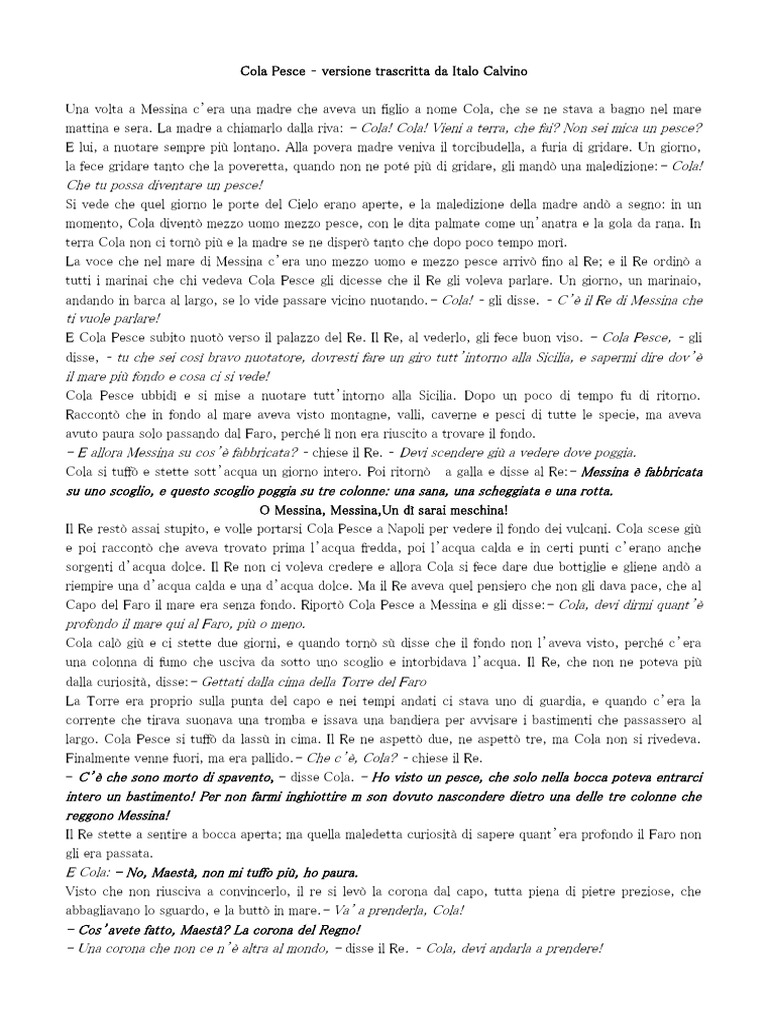 Cola Pesce versione trascritta da Italo Calvino