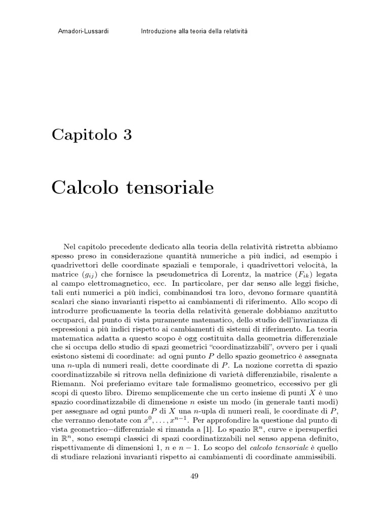 metrico gij conclude la parte di calcolo tensoriale e costituisce una delle principali