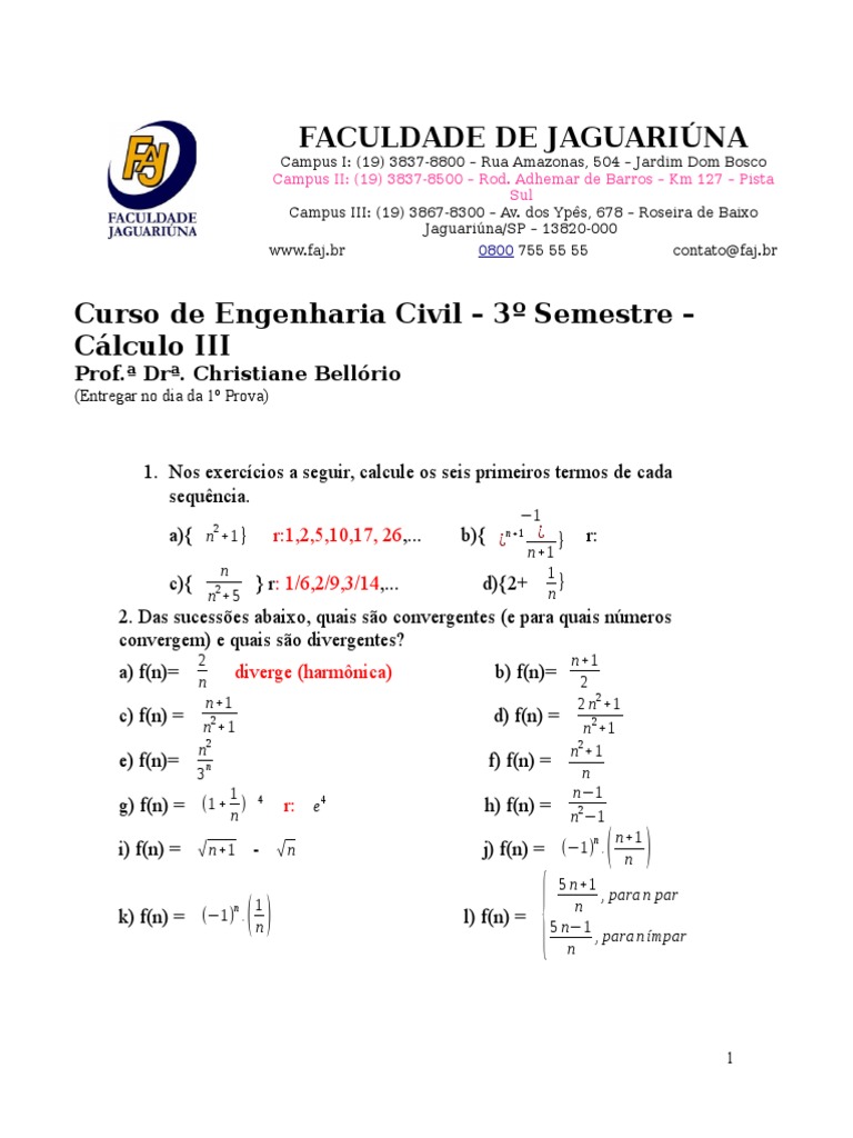 1. Nos exerccios a seguir, calcule os seis primeiros termos de cada