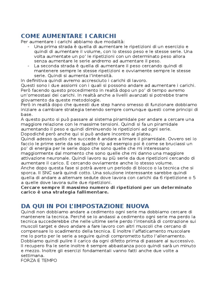 Quindi importante utilizzare unintensit di carico mediamente elevata.