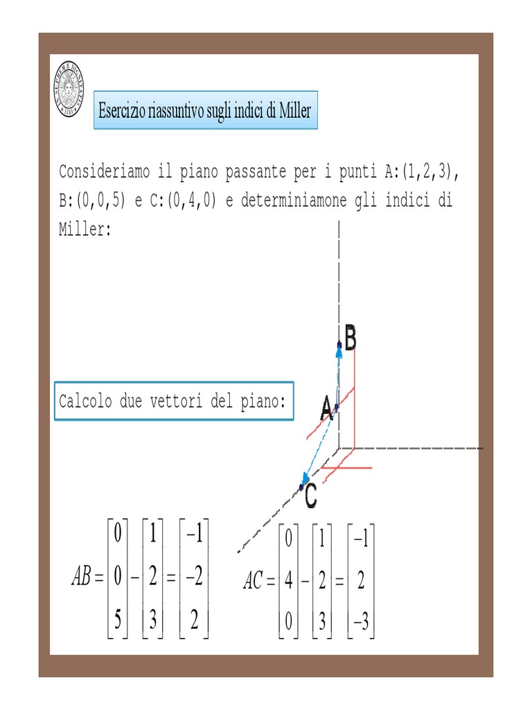 B:(0,0,5) e C:(0,4,0) e determiniamone gli indici di