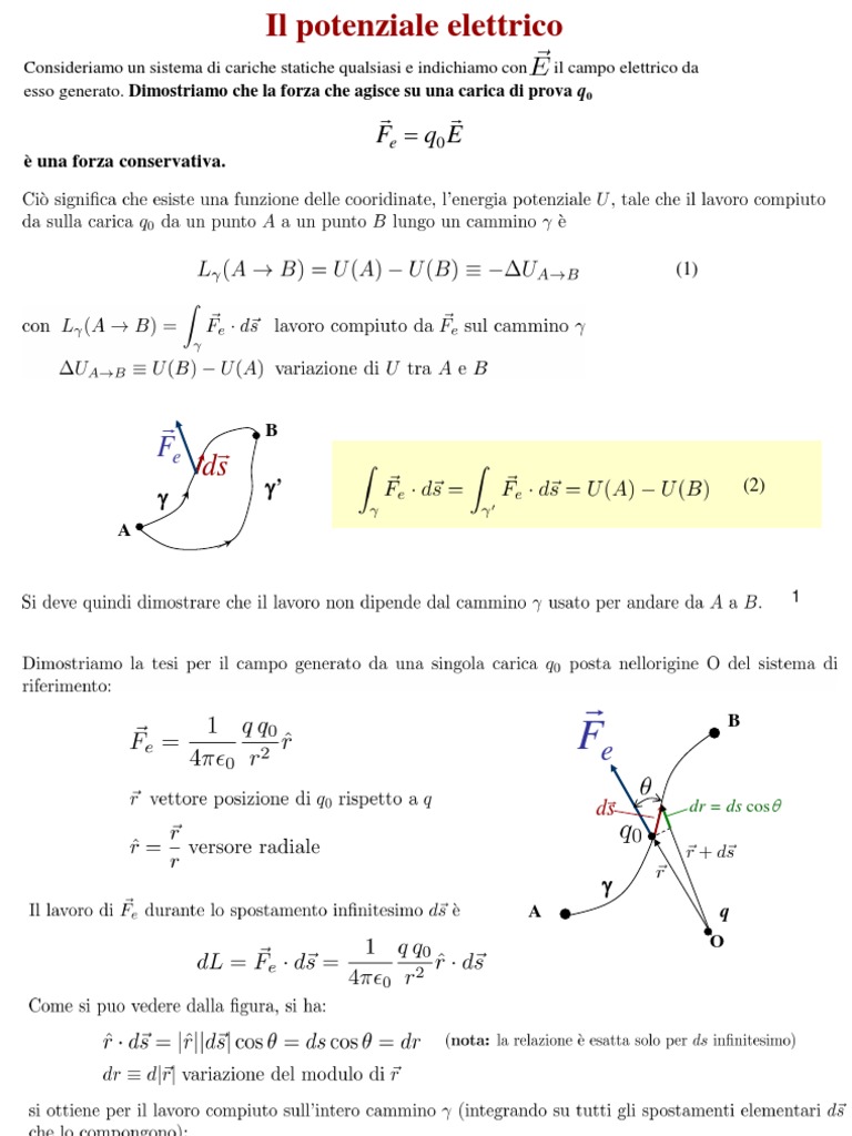 La variazione dellenergia potenziale di q tra A e B quindi uguale al lavoro che deve