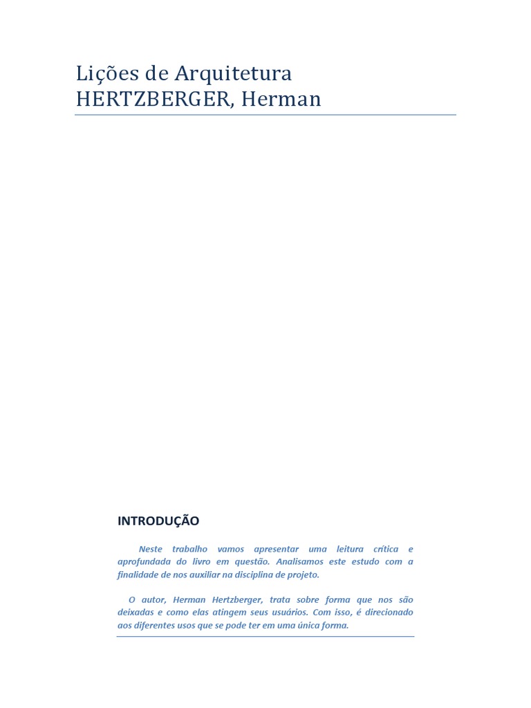 De acordo com o autor, Hertzberger, trata de comeo com os trs itens os quais o julga