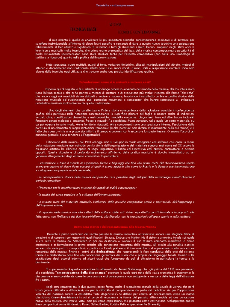 Il mio intento quello di analizzare le pi importanti tecniche contemporanee esecutive e di scrittura per