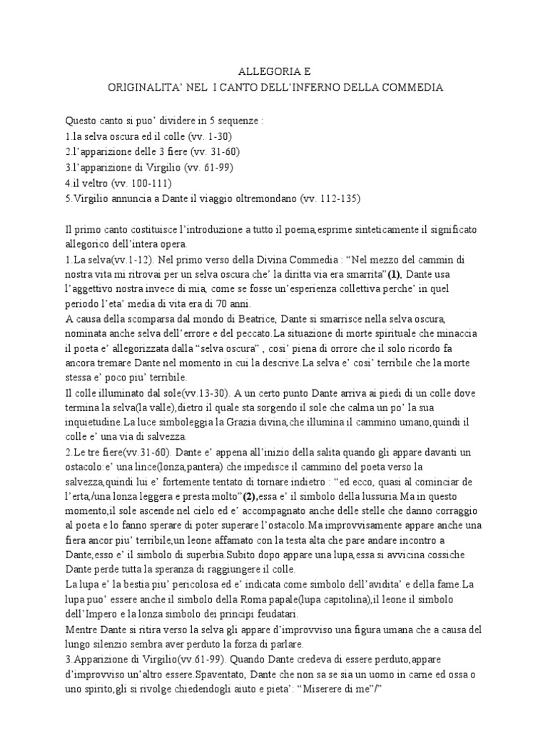 l’inferno,fu l’opera di Virgilio – l’[Link] similitudini sono: il bosco romito (Virgilio) e la