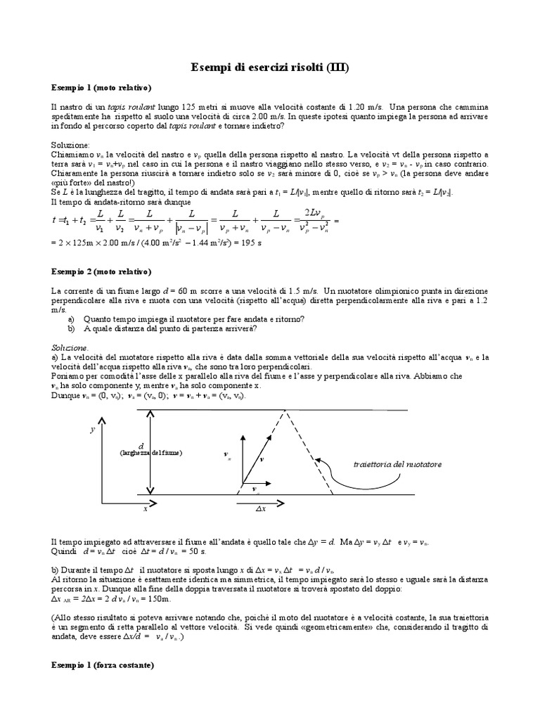 perpendicolare alla riva e nuota con una velocit (rispetto allacqua) diretta perpendicolarmente alla riva e pari a 1.2