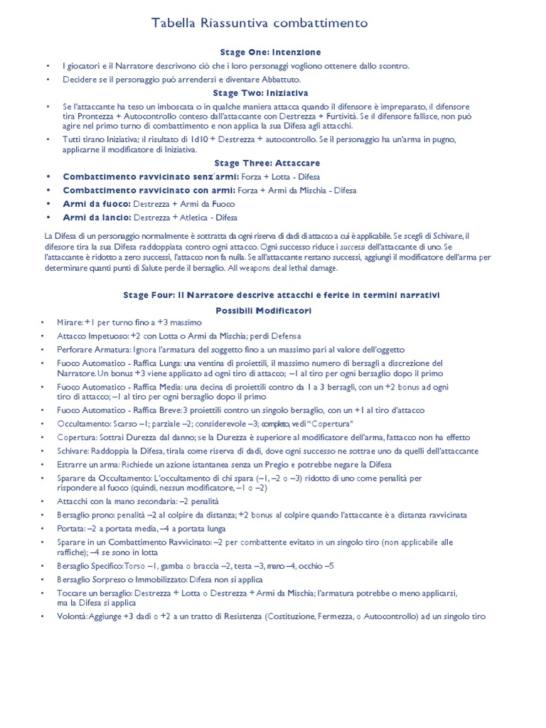 Schivare: Raddoppia la Difesa, tirala come riserva di dadi, dove ogni successo ne sottrae uno da quelli dellattaccante