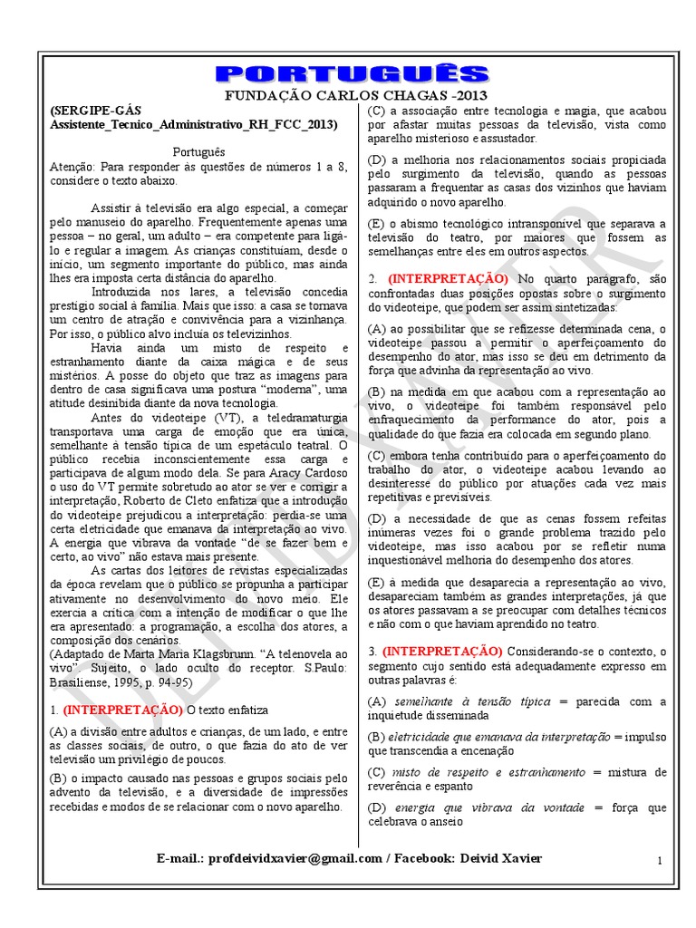1. (INTERPRETAO) O texto enfatiza