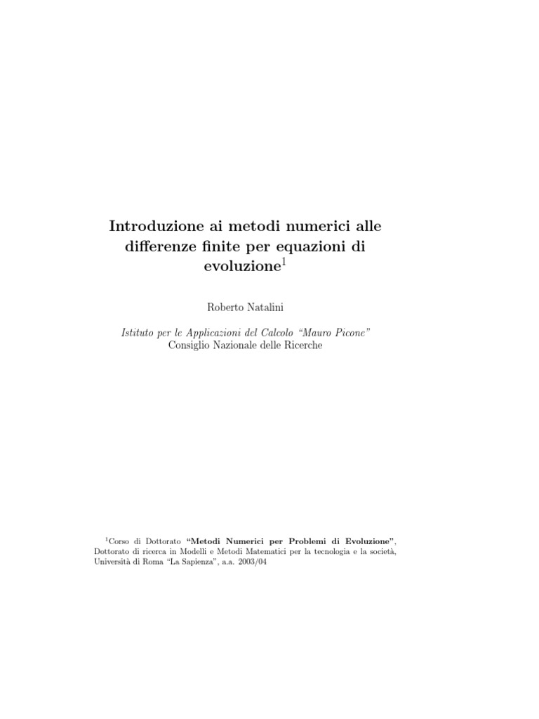 Corso di Dottorato Metodi Numerici per Problemi di Evoluzione,