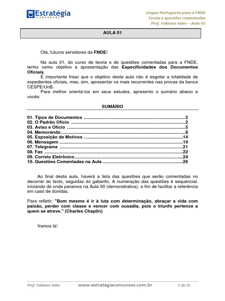 Na aula 01, do curso de teoria e de questes comentadas para a FNDE,