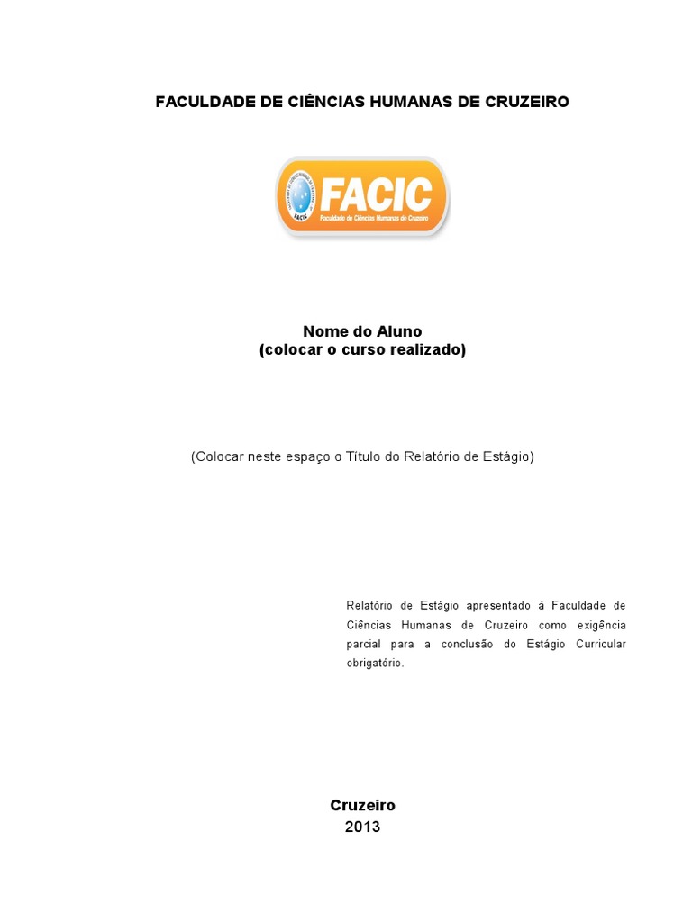 Obs: Ao final do relatrio dever constar a avaliao do estagirio feita pelo chefe do