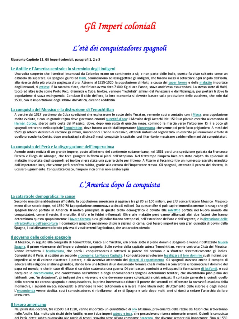Riassunto Capitolo 13, Gli Imperi coloniali, paragrafi 1, 2 e 3