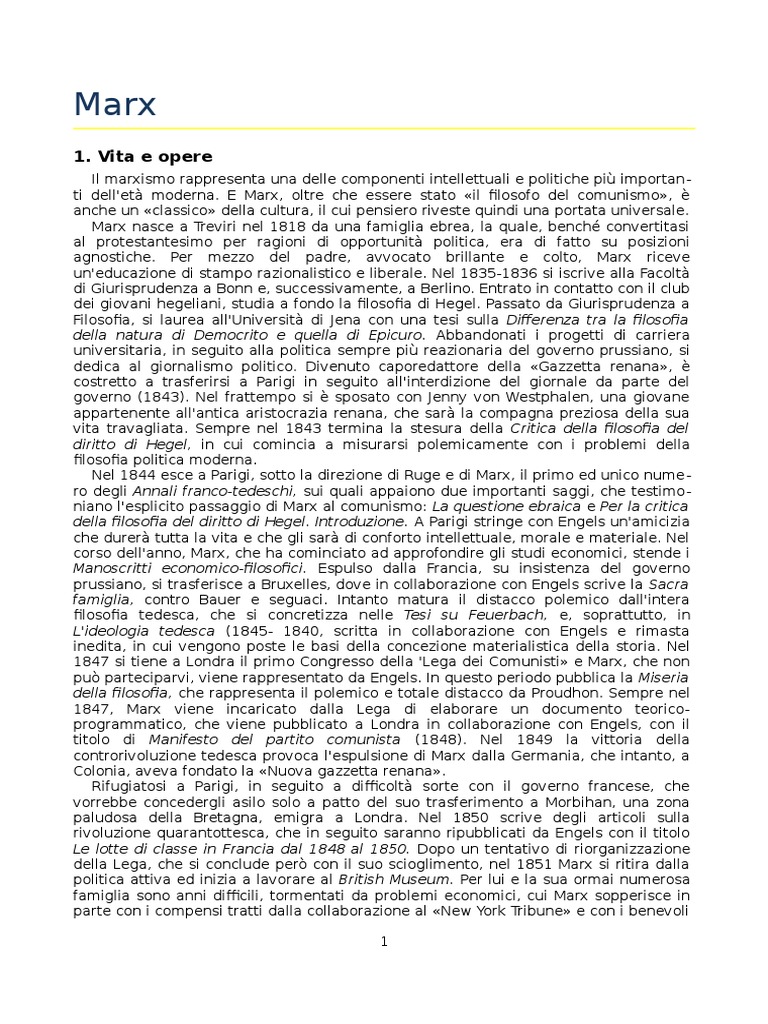 Marx nasce a Treviri nel 1818 da una famiglia ebrea, la quale, bench convertitasi