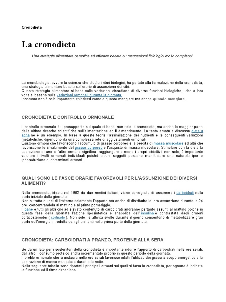 Nella cronodieta, ideata nel 1992 da due medici italiani, viene consigliato di assumere i carboidrati nella