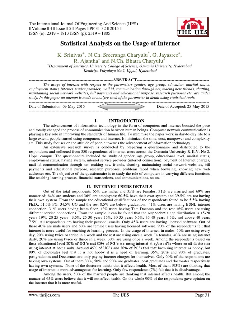 Statistical Analysis on the Usage of Internet