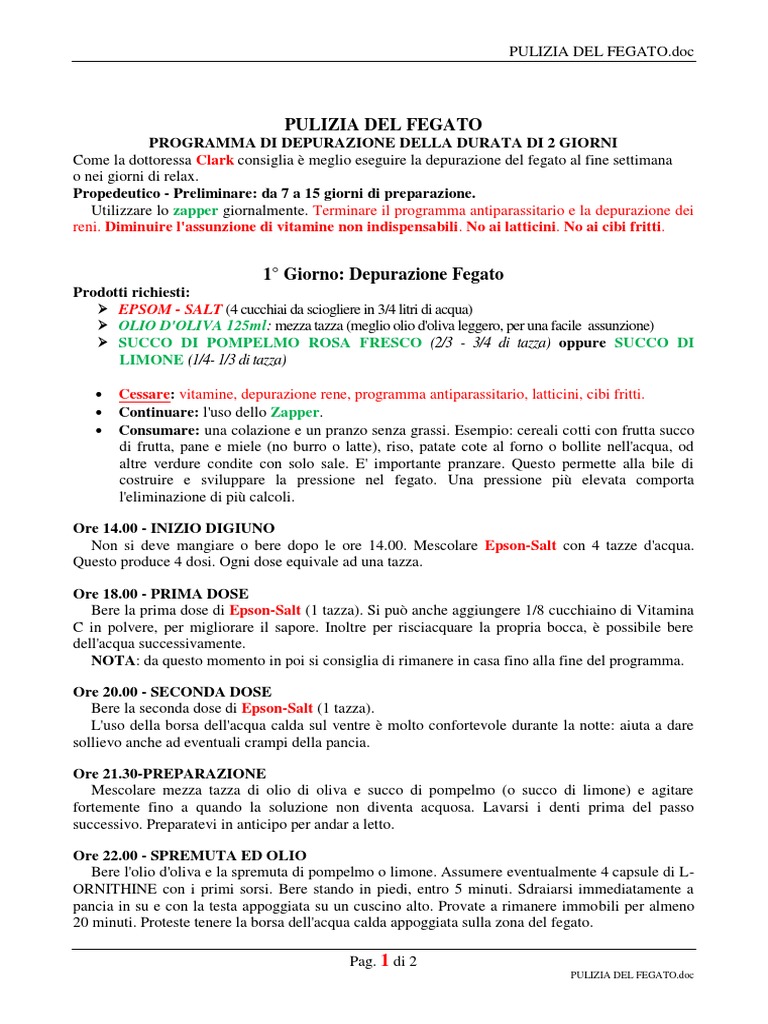 PROGRAMMA DI DEPURAZIONE DELLA DURATA DI 2 GIORNI