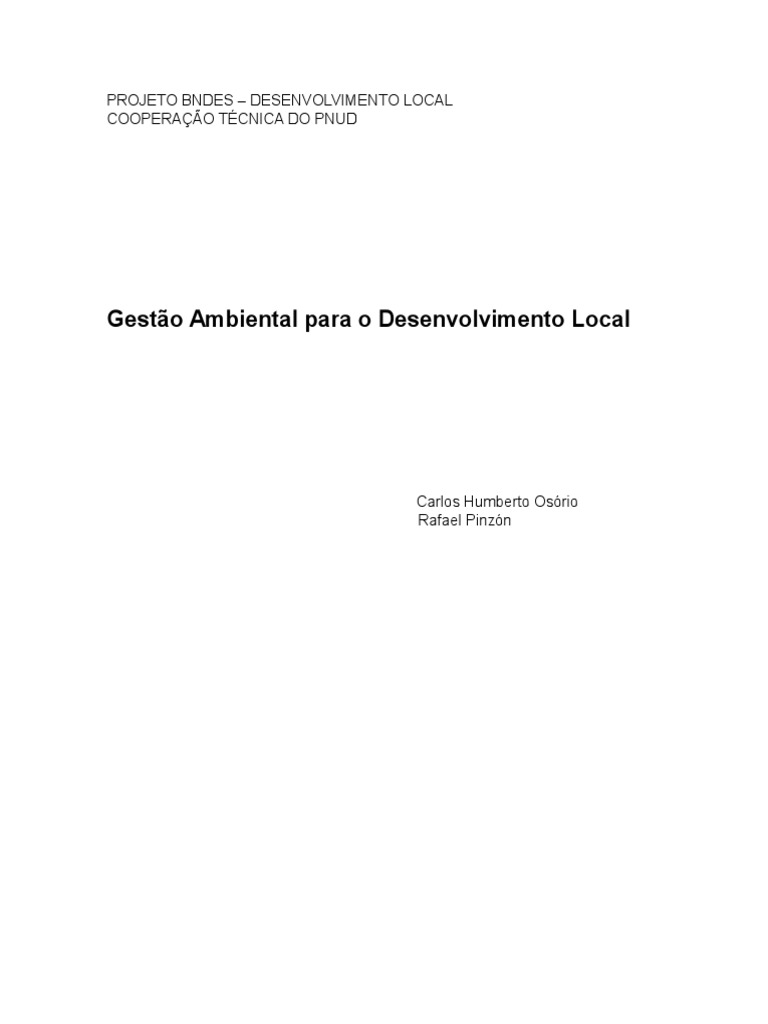 Gesto Ambiental para o Desenvolvimento Local uma publicao da