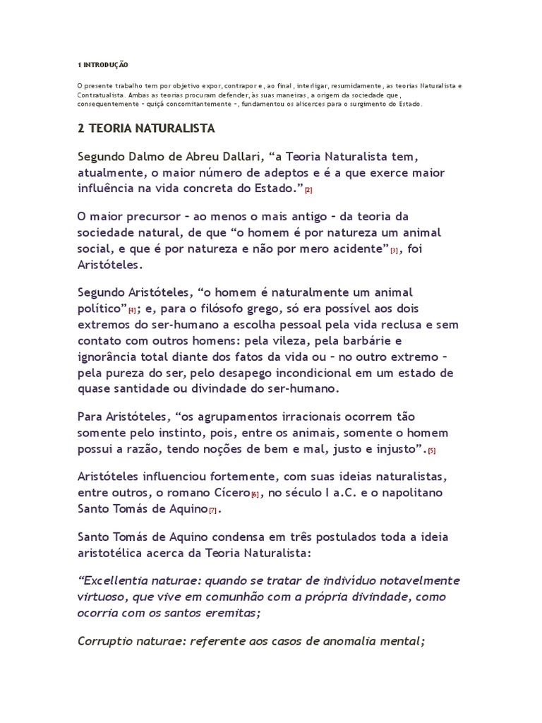 O presente trabalho tem por objetivo expor, contrapor e, ao final, interligar, resumidamente, as teorias Naturalista e