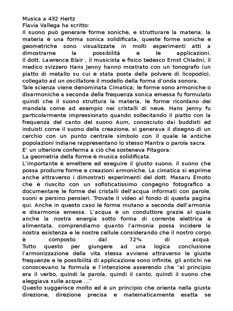 vedere i collegamenti della musica a 432 Hz con tutto il resto. La