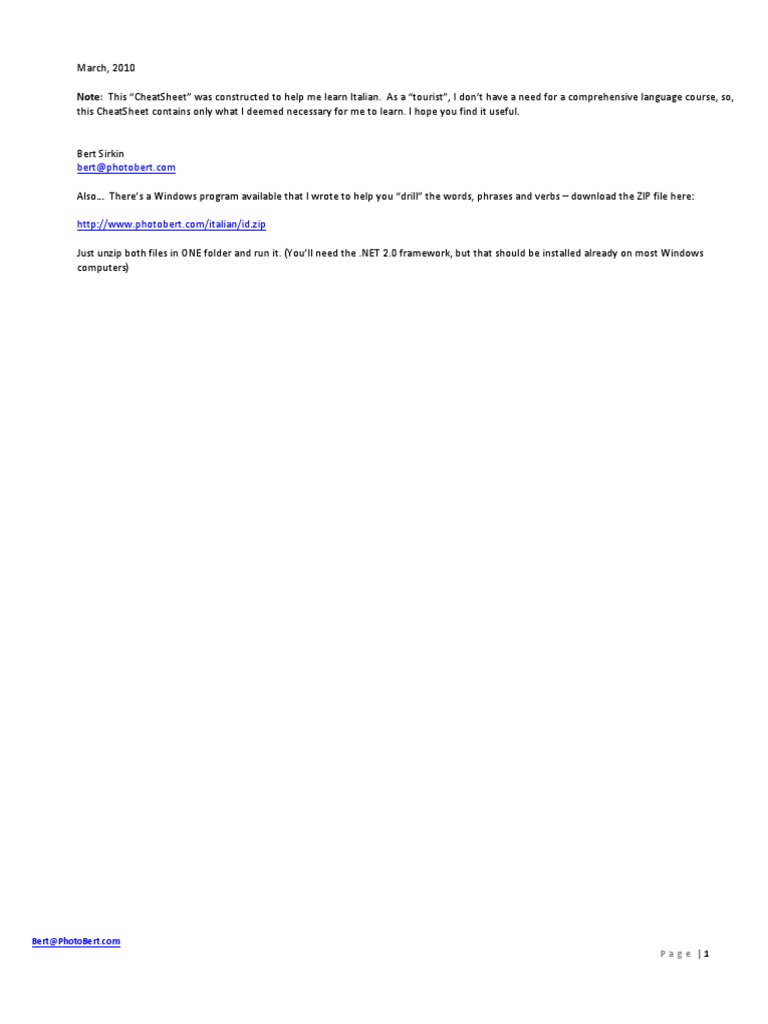 Note: This CheatSheet was constructed to help me learn Italian. As a tourist, I dont have a need for a comprehensive language course, so,