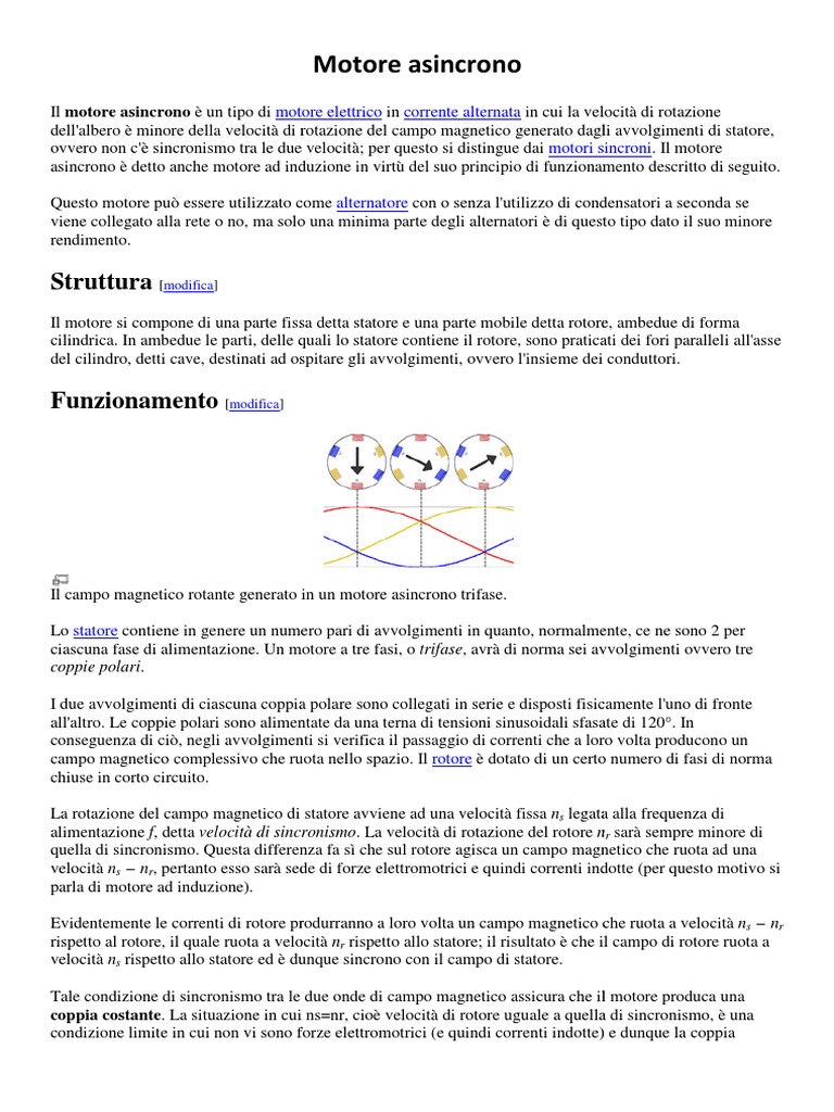 asincrono detto anche motore ad induzione in virt del suo principio di funzionamento descritto di seguito.