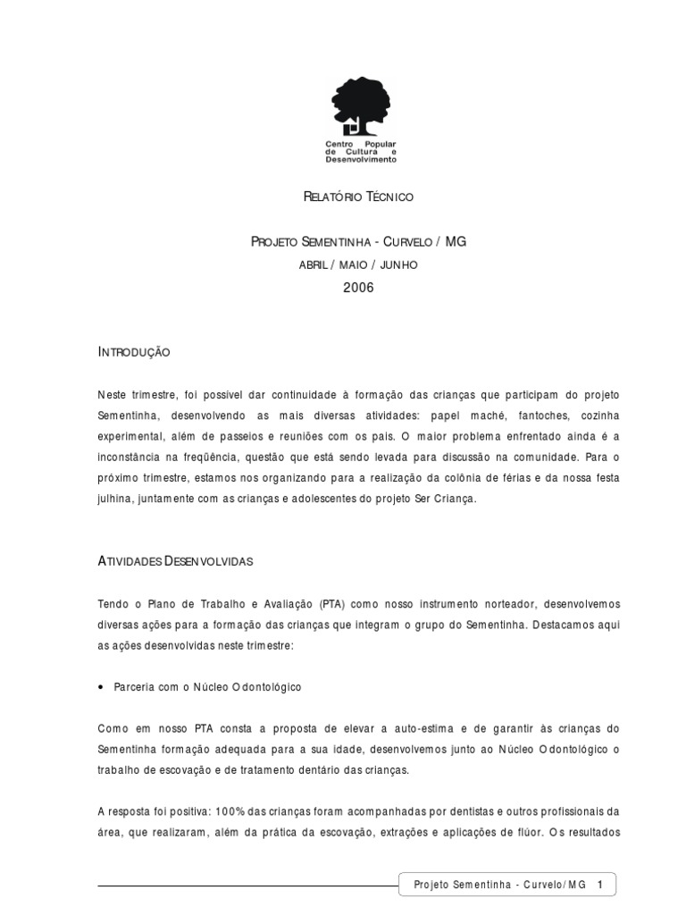 Neste trimestre, foi possível dar continuidade à formação das crianças que participam do projeto Sementinha, desenvolvendo as mais diversas atividades: papel maché, fantoches, cozinha experimental, além de passeios e reuniões com os pais. O maior problema enfrentado ainda é a inconstância na freqüência, questão que está sendo levada para discussão na comunidade. Para o próximo trimestre, estamos nos organizando para a realização da colônia de férias e da nossa festa julhina, juntamente com as crianças e adolescentes do projeto Ser Criança.