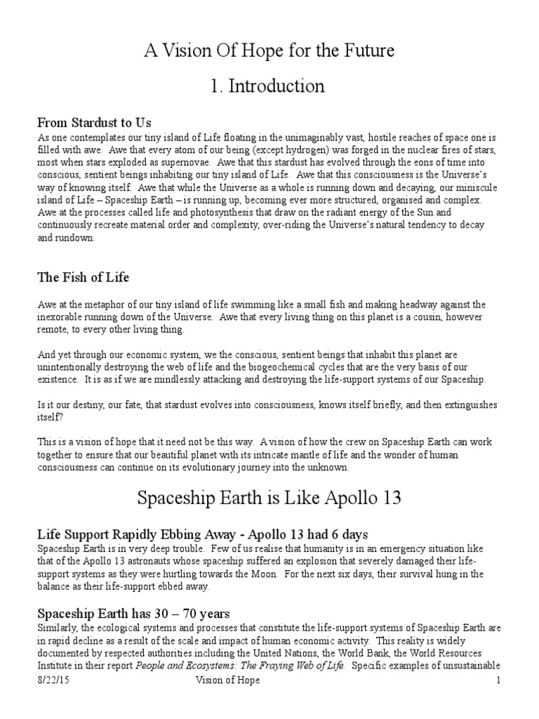 passengers and crew of Spaceship Earth also find ourselves in the midst of social crisis, economic crisis, and