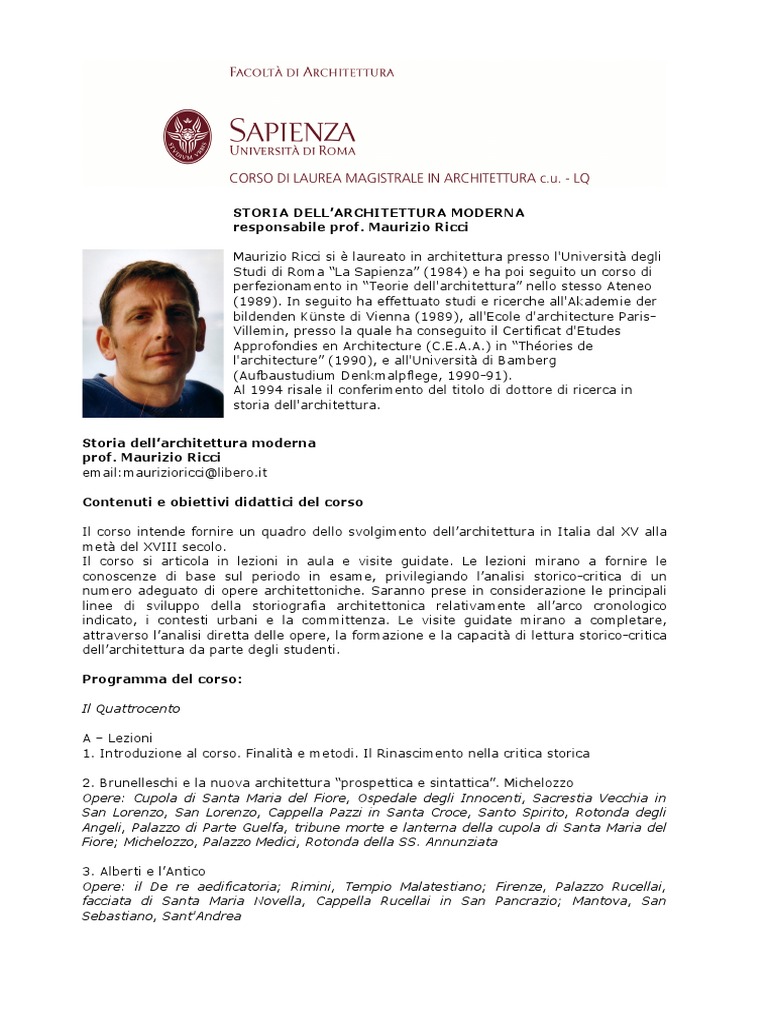 Il corso intende fornire un quadro dello svolgimento dellarchitettura in Italia dal XV alla