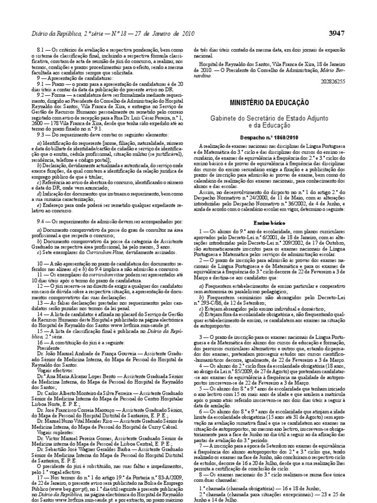 exames nacionais de Língua Portuguesa e de Matemática são afixadas Disposições gerais